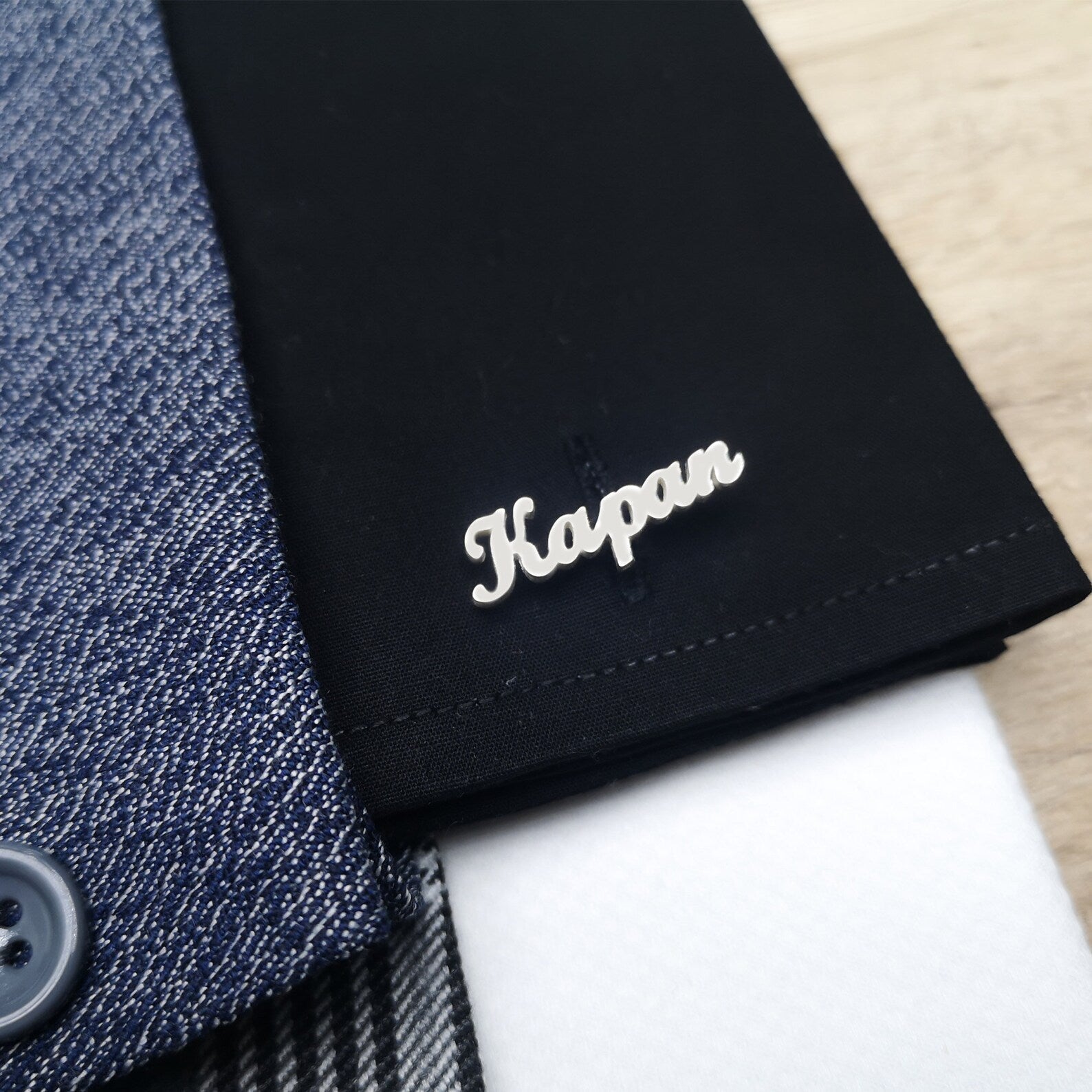 These Personalized Unique Font Name Cufflinks feature custom engraving of your name or initials in a stylish, distinctive font. A perfect accessory for adding a touch of individuality and sophistication to any formal attire.