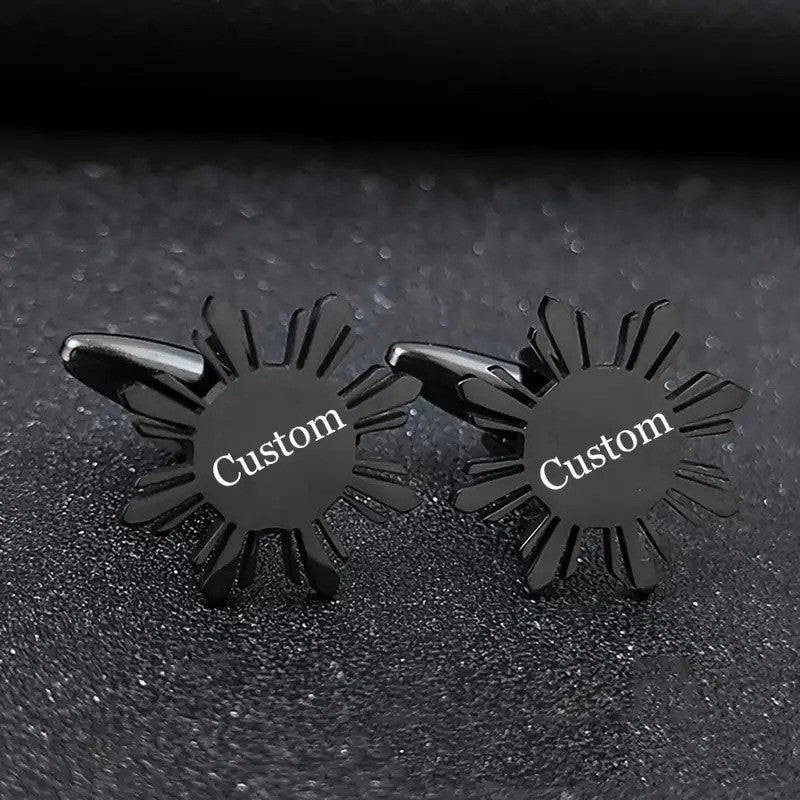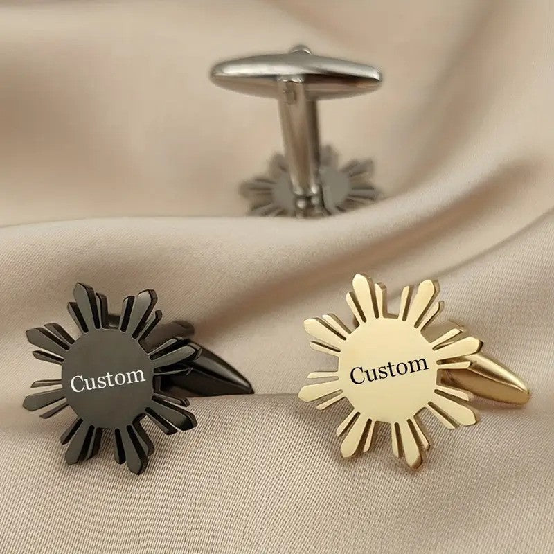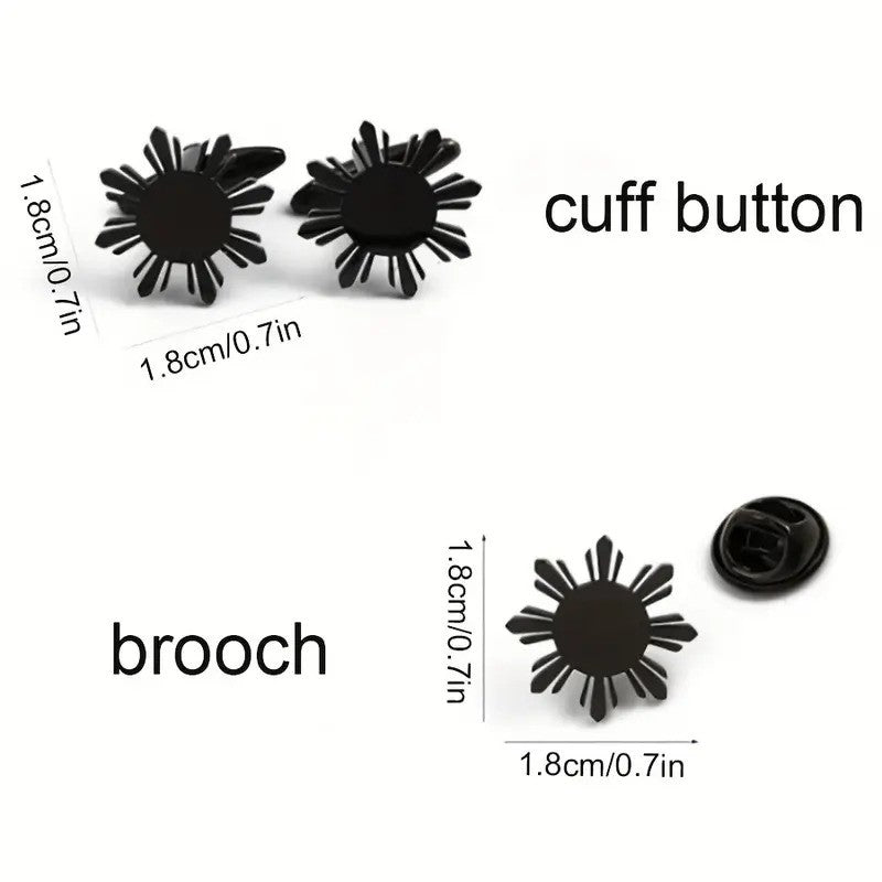 Brighten up your style with the Personalized Name Engraved Sunflower Cufflink-Brooch Set. Featuring a charming sunflower design, this set can be customized with your name or initials, adding a unique and elegant touch to any outfit. Perfect for special occasions or as a thoughtful gift.