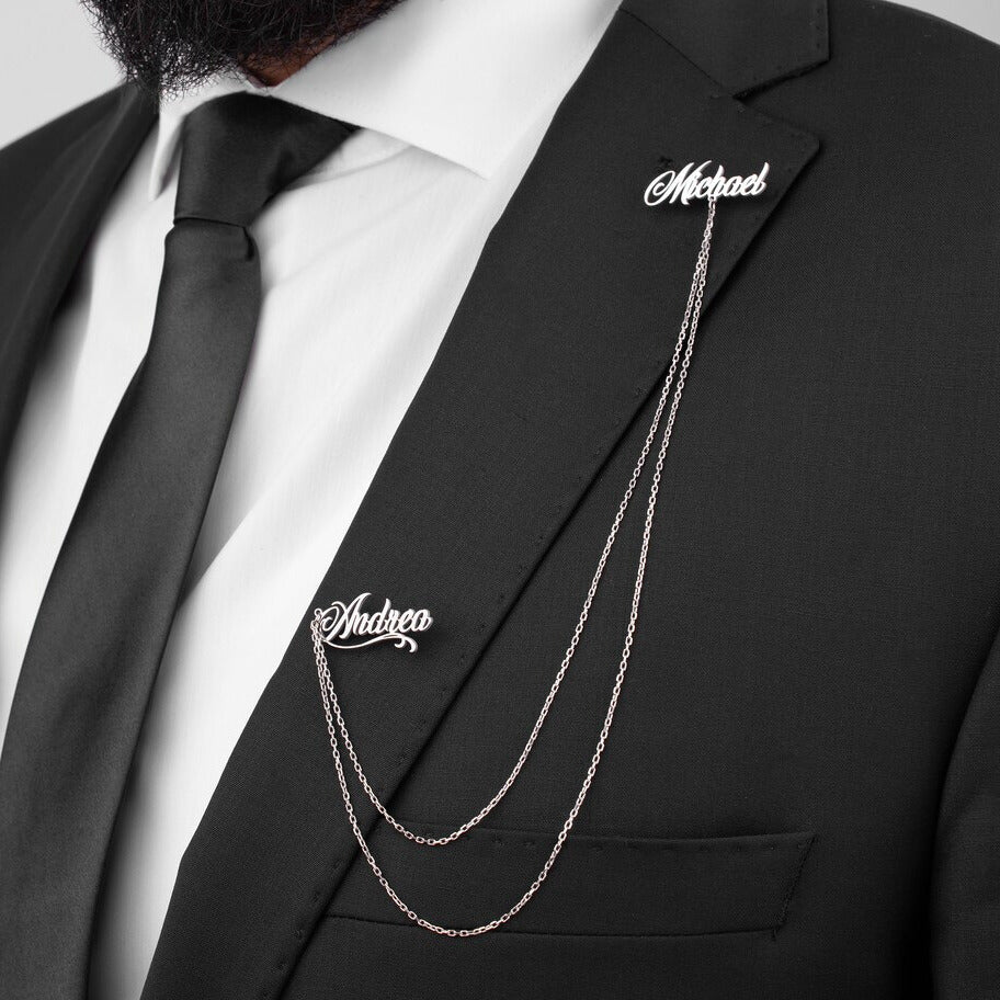 The Personalized Chain Lapel Brooch for Bride & Groomsmen is a stylish and custom accessory designed to add a personal touch to wedding attire. Featuring a personalized detail, this elegant brooch is perfect for the groom, groomsmen, or bridal party, making it a unique and thoughtful keepsake for a special occasion.
