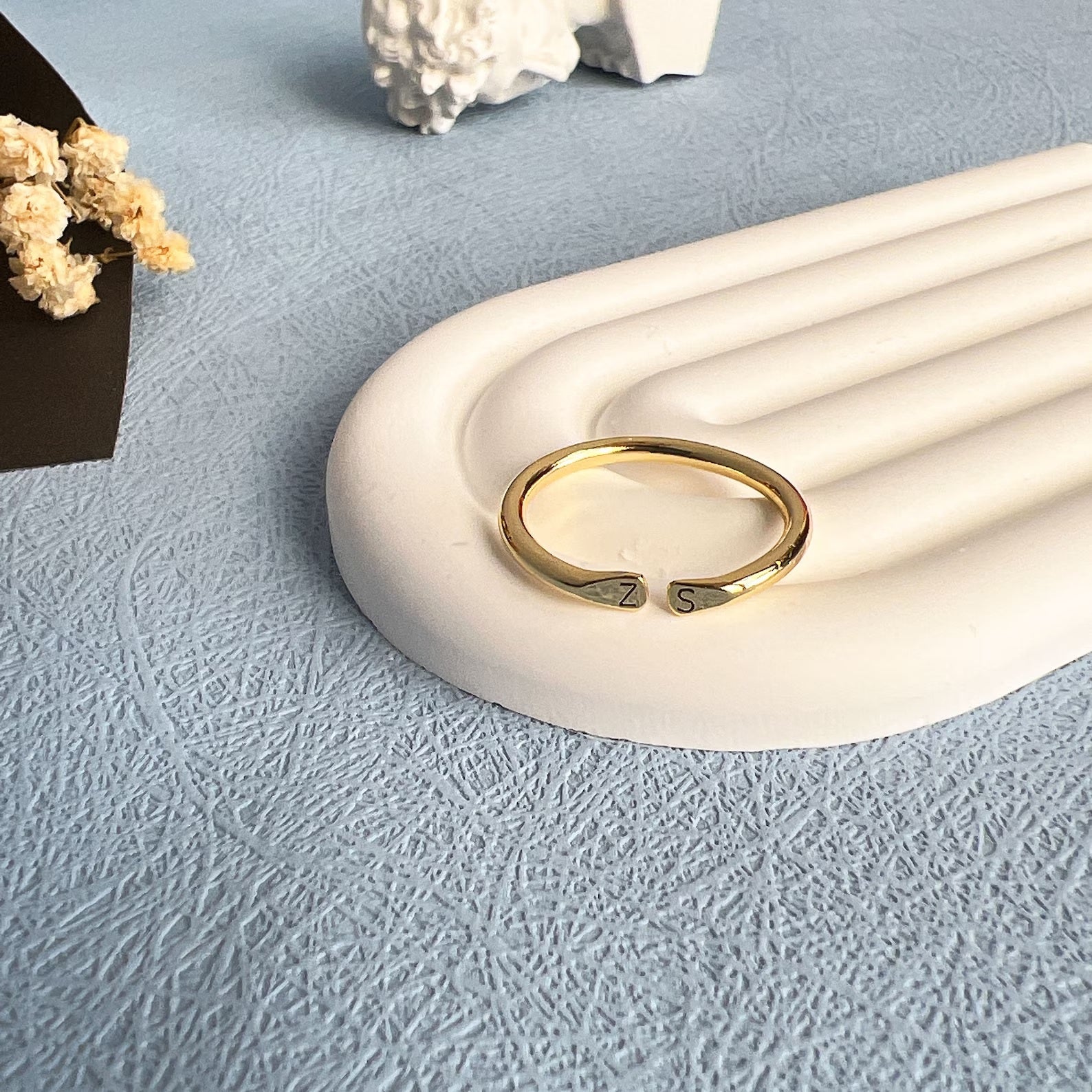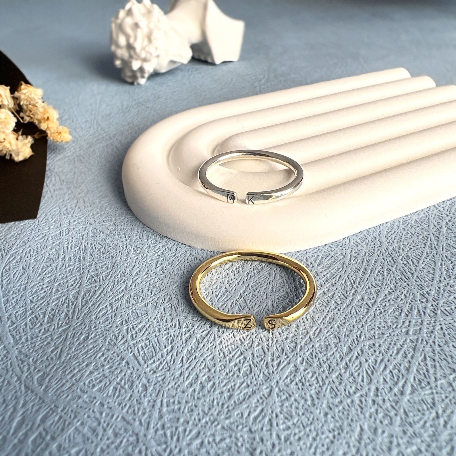 The Personalized Stacking Open Two Letter Ring is a customizable, modern piece of jewelry featuring two interlocking letters of your choice. Perfect for stacking with other rings or wearing alone, it offers a unique, personal touch to your accessory collection.