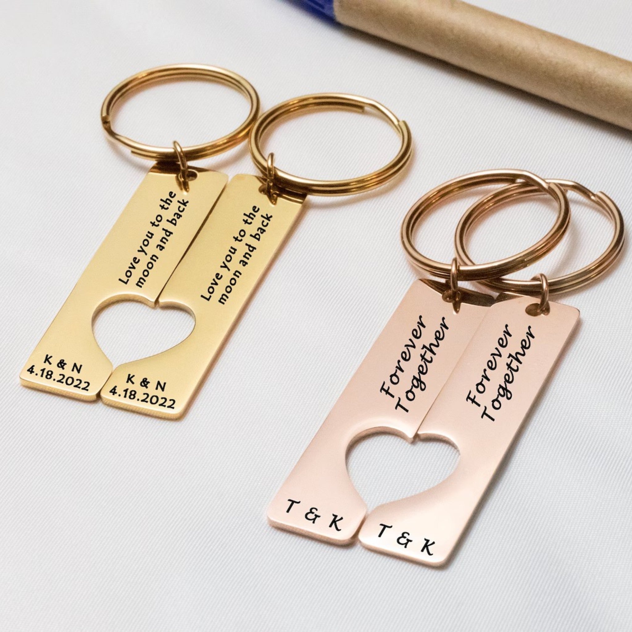 Celebrate your love with these unique custom couple keychains, designed to keep you and your partner forever connected. Each set includes two interlocking keychains with a heart cutout design – perfectly engraved with your initials, date, or message for a truly personal touch. 👫🔐