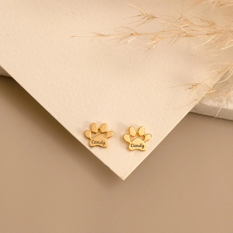 Celebrate the unconditional love of your furry friend with our Dainty Engraved Paw Print Name Earrings – a heartfelt keepsake crafted for true pet lovers.