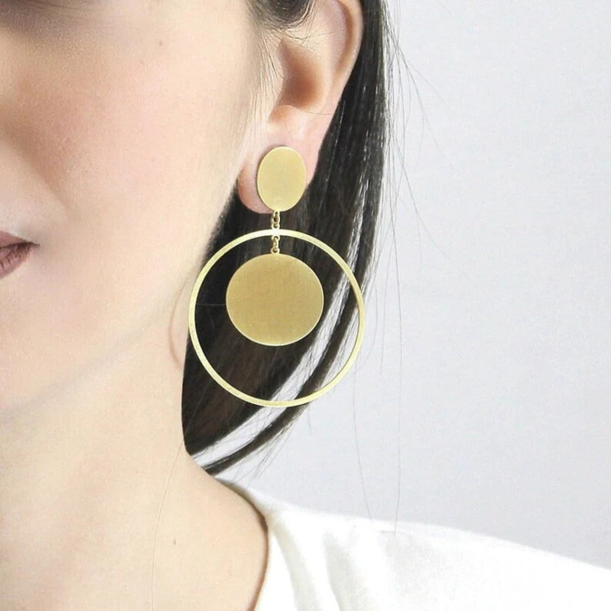 ✨ Geometric Double Circle Drop Earrings by Jeluxa ✨