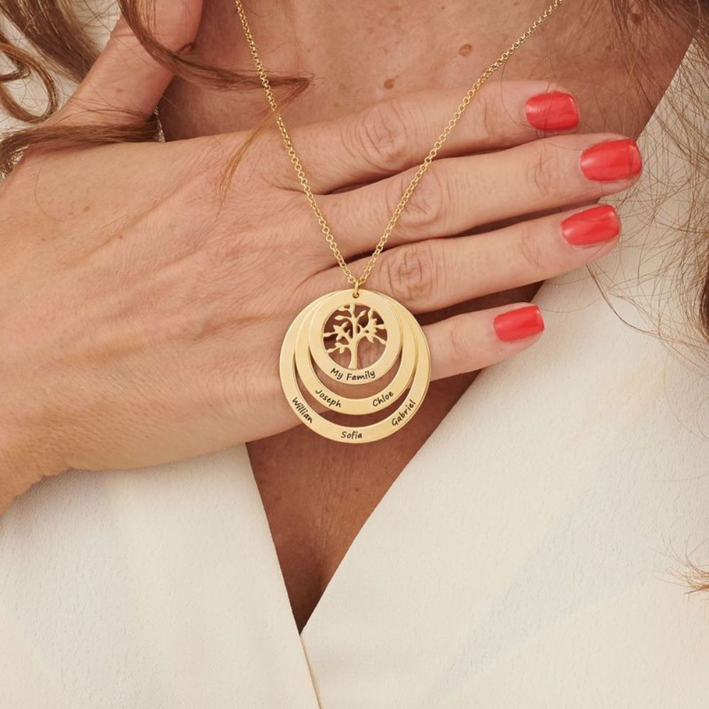 The Customized Hanging Family Tree Circle Necklace is a personalized piece of jewelry featuring a beautifully crafted family tree design. Engrave names or initials of loved ones to create a unique, meaningful accessory that symbolizes connection and heritage. Perfect as a sentimental gift for family members.
