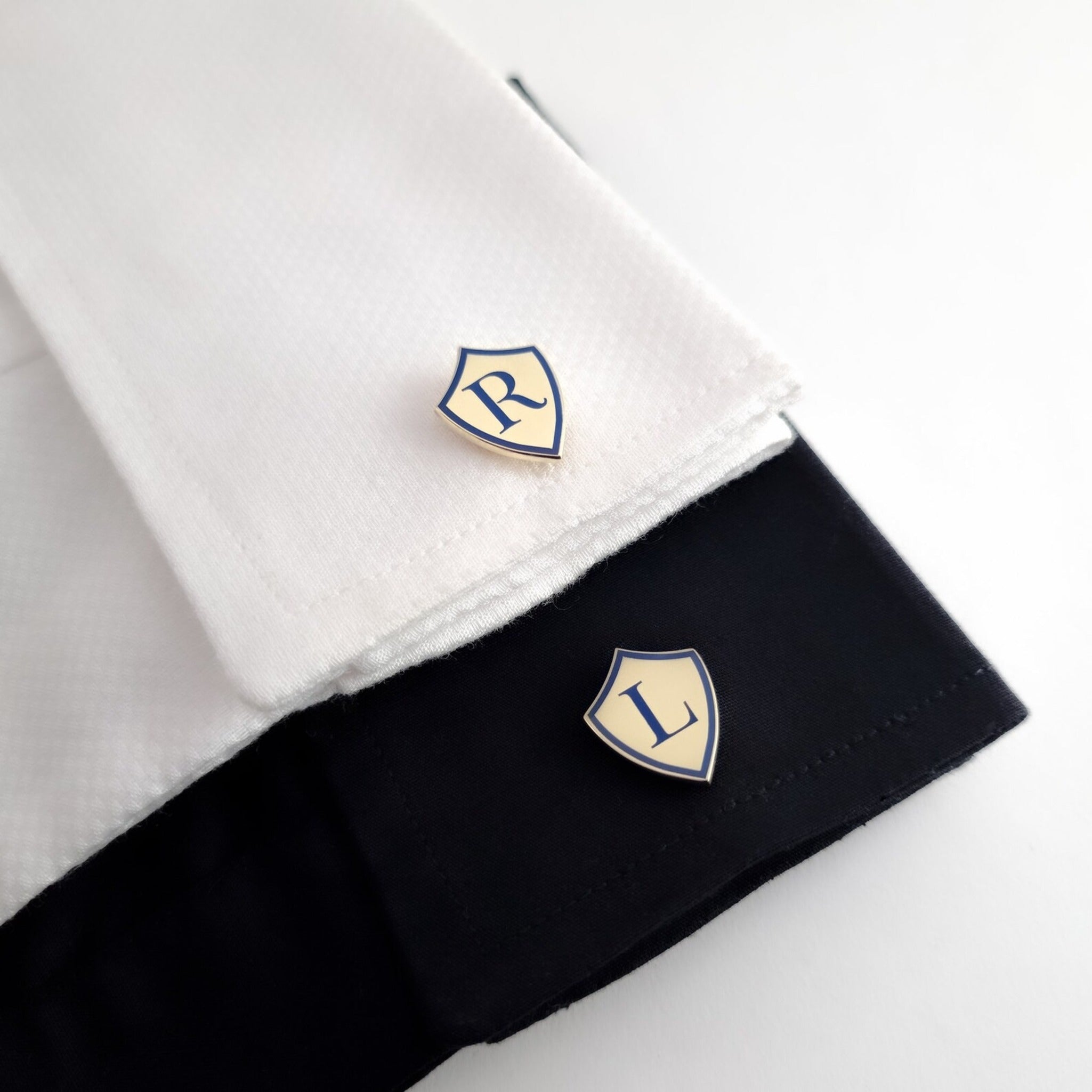 Command attention and showcase your legacy with these distinctive Shield Shape Monogram Initial Cufflinks. Far from the ordinary, the crest-like shield design offers a timeless, sophisticated, and slightly vintage appeal, symbolizing honor and strength. Each cufflink is beautifully crafted to prominently display a bold initial, set against a contrasting background for maximum visibility and a sharp, clean look. Perfect for the discerning gentleman, these cufflinks make a personal statement whether worn at a business meeting or a formal event.