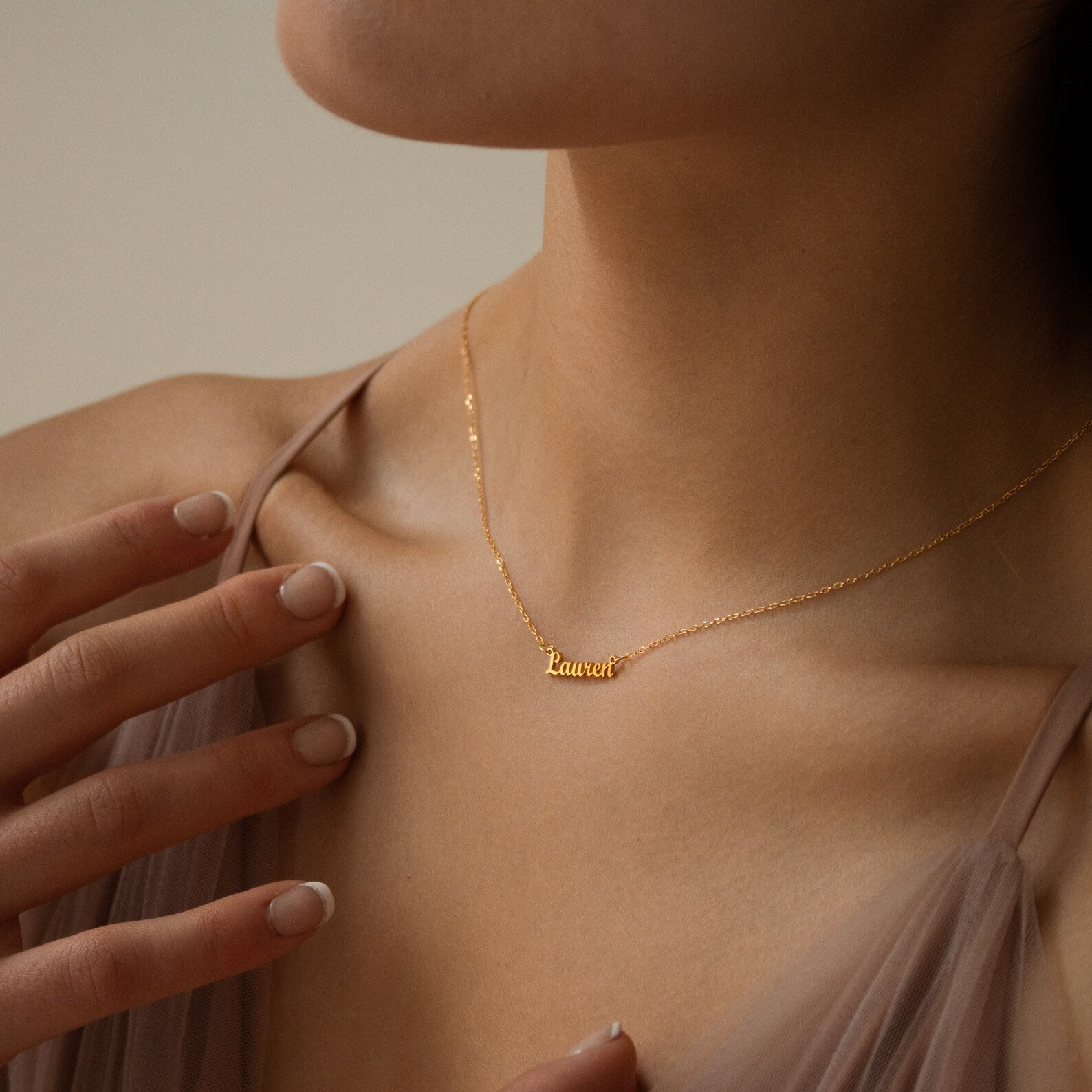 The Tiny London Name Necklace for Baby Girls is a delicate and adorable piece, featuring a small pendant engraved with a custom name. A perfect, personalized gift to celebrate a special little one’s name in a cute and stylish way.