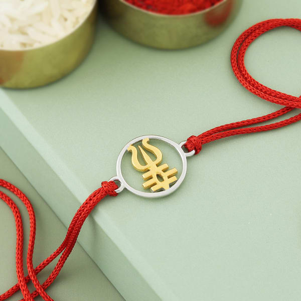 The Trishul 18K Gold Plated Sterling Silver Rakhi features a stunning Trishul (trident) design, plated with luxurious 18K gold and crafted from high-quality sterling silver. This rakhi symbolizes strength and protection, making it a perfect choice for Raksha Bandhan, combining tradition with elegance for a meaningful celebration.