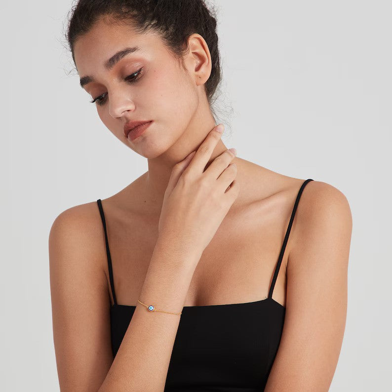 The Turkish Evil Eye Charm-Blue Eye Stacking Bracelet is a stylish and meaningful accessory that combines the protective power of the blue evil eye with a trendy stacking design. Ideal for layering, it offers both spiritual protection and a fashionable touch to any outfit. Perfect for those seeking good luck and positive energy in their jewelry.
