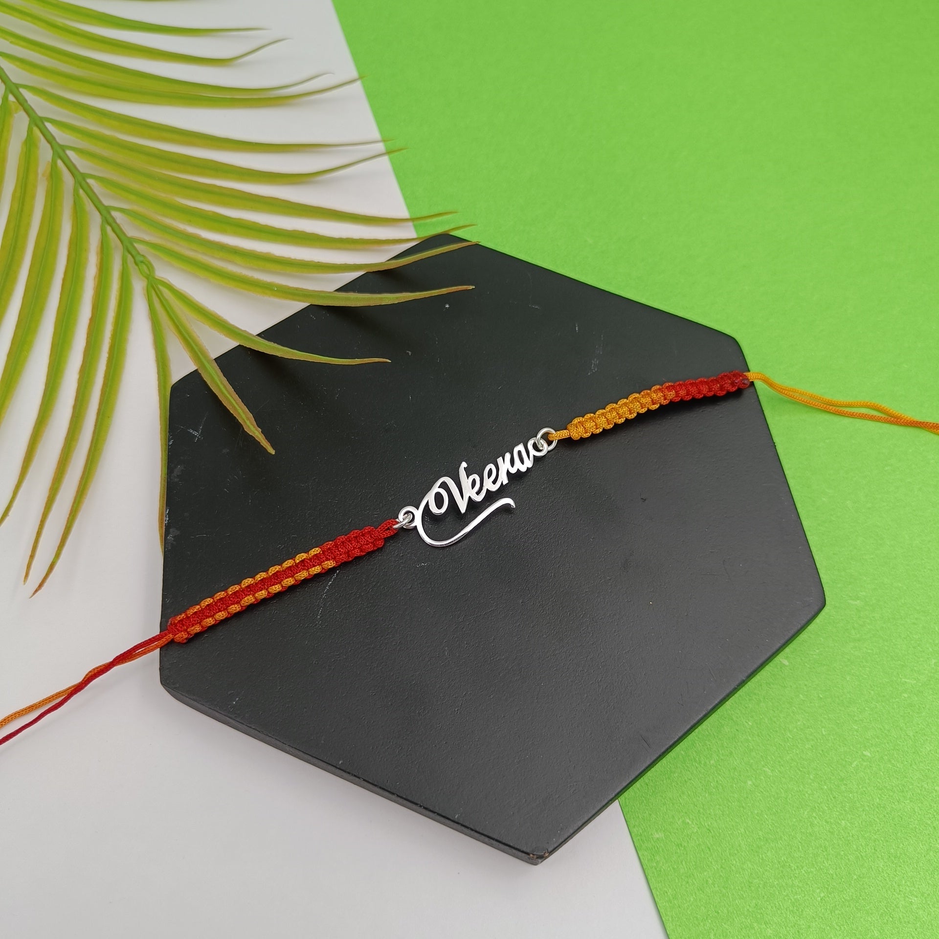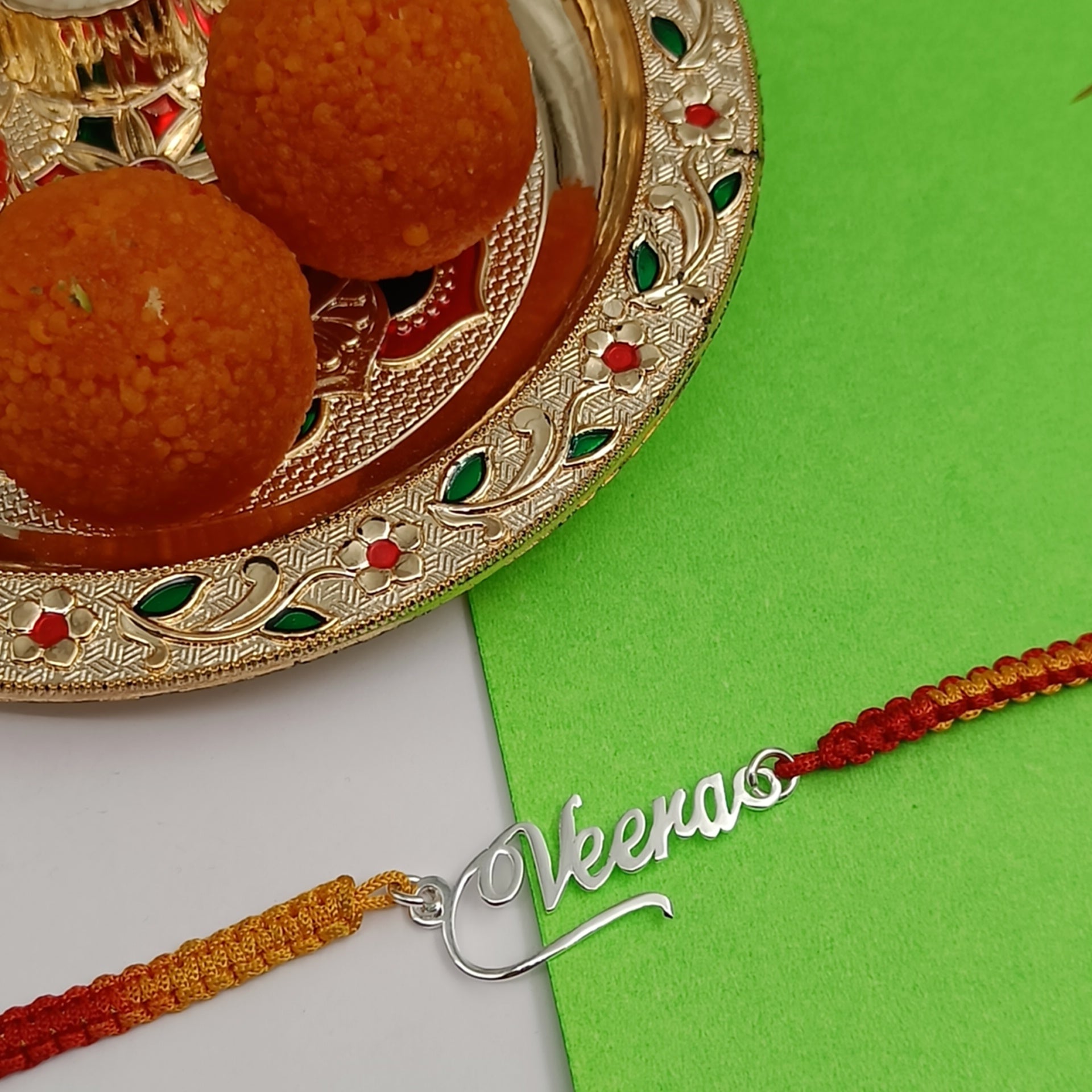 The Veera Initial Silver Rakhi for Brother is a personalized and stylish piece, crafted from high-quality silver. Featuring a sleek design with the initial of your brother's name, it adds a unique and meaningful touch to the traditional Raksha Bandhan celebration. This elegant rakhi symbolizes love and protection, making it a perfect gift for your brother on this special occasion.
