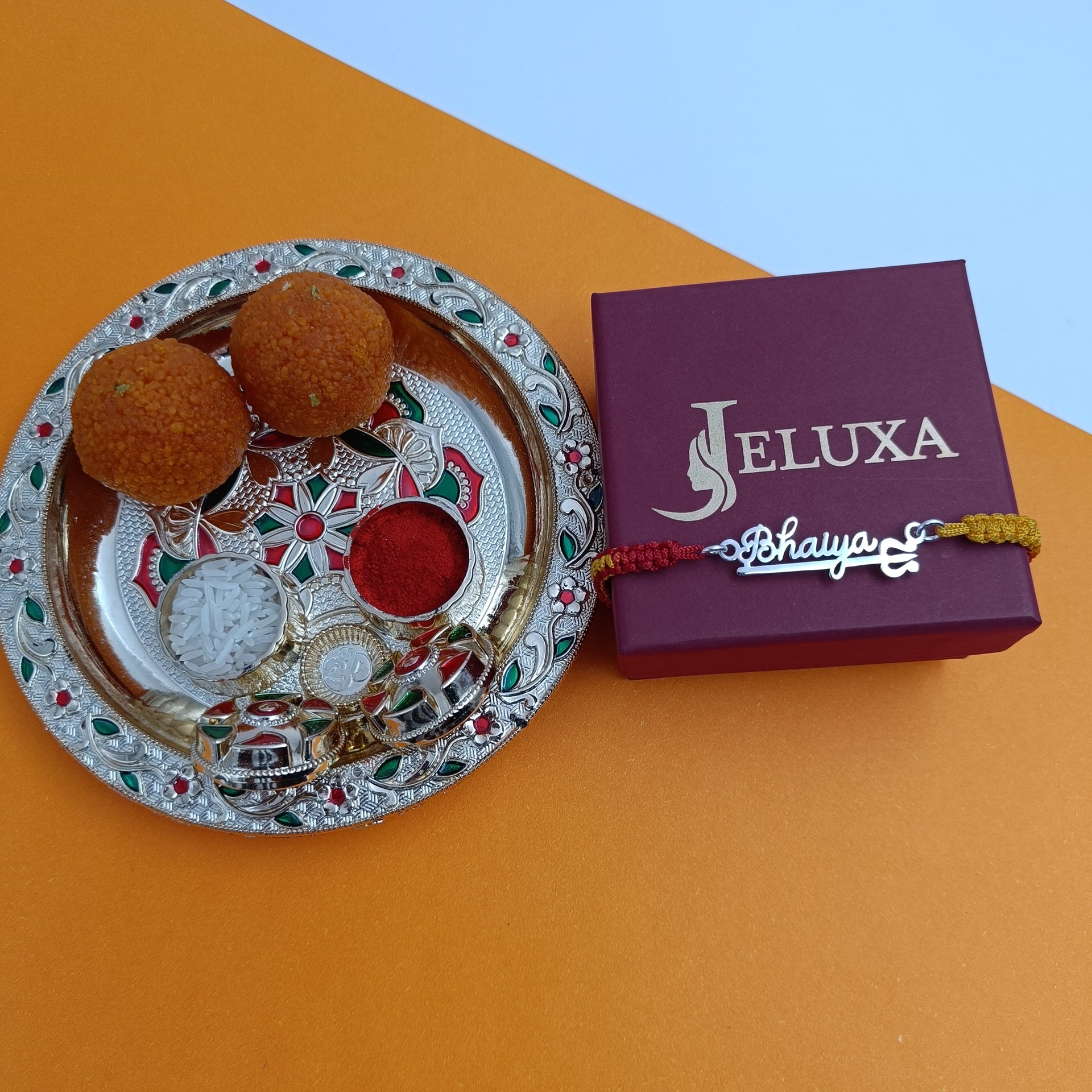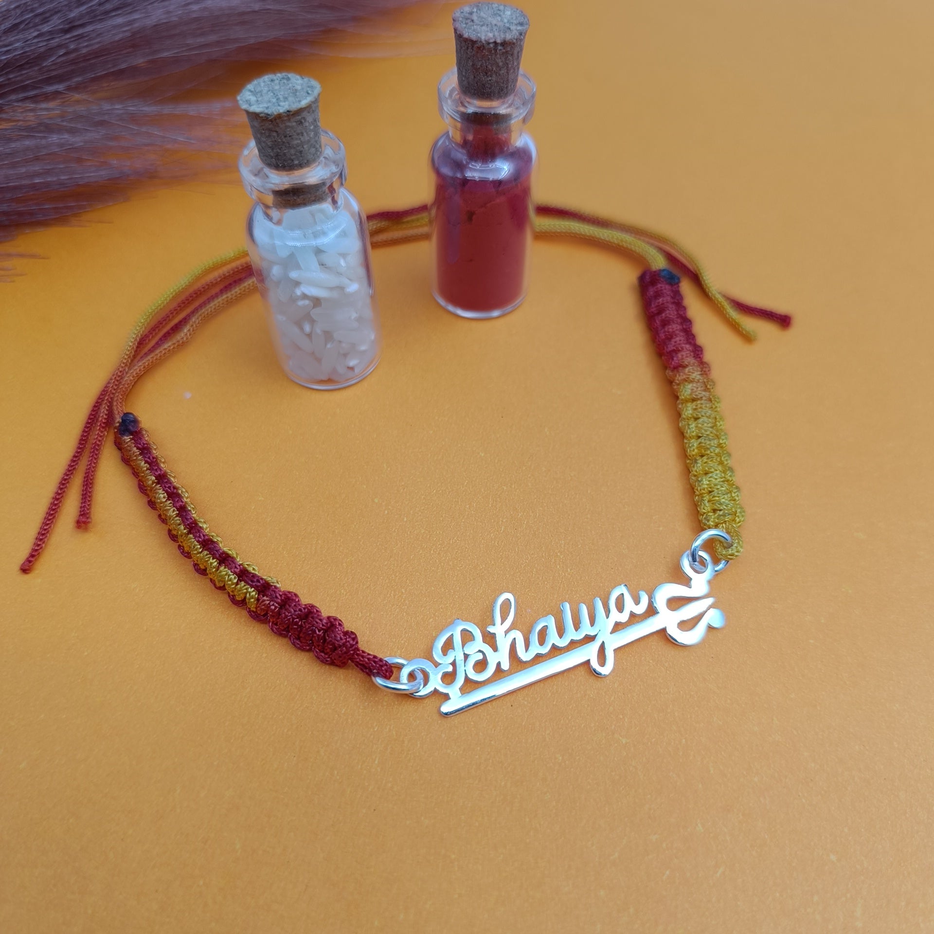 A beautifully crafted Silver Rakhi for your brother, featuring intricate detailing and a stylish "Bhaiya" design. This elegant Rakhi is a perfect blend of tradition and sophistication, symbolizing love, protection, and the cherished bond between siblings. Ideal for celebrating Raksha Bandhan, this Rakhi will make your brother feel special and loved.
